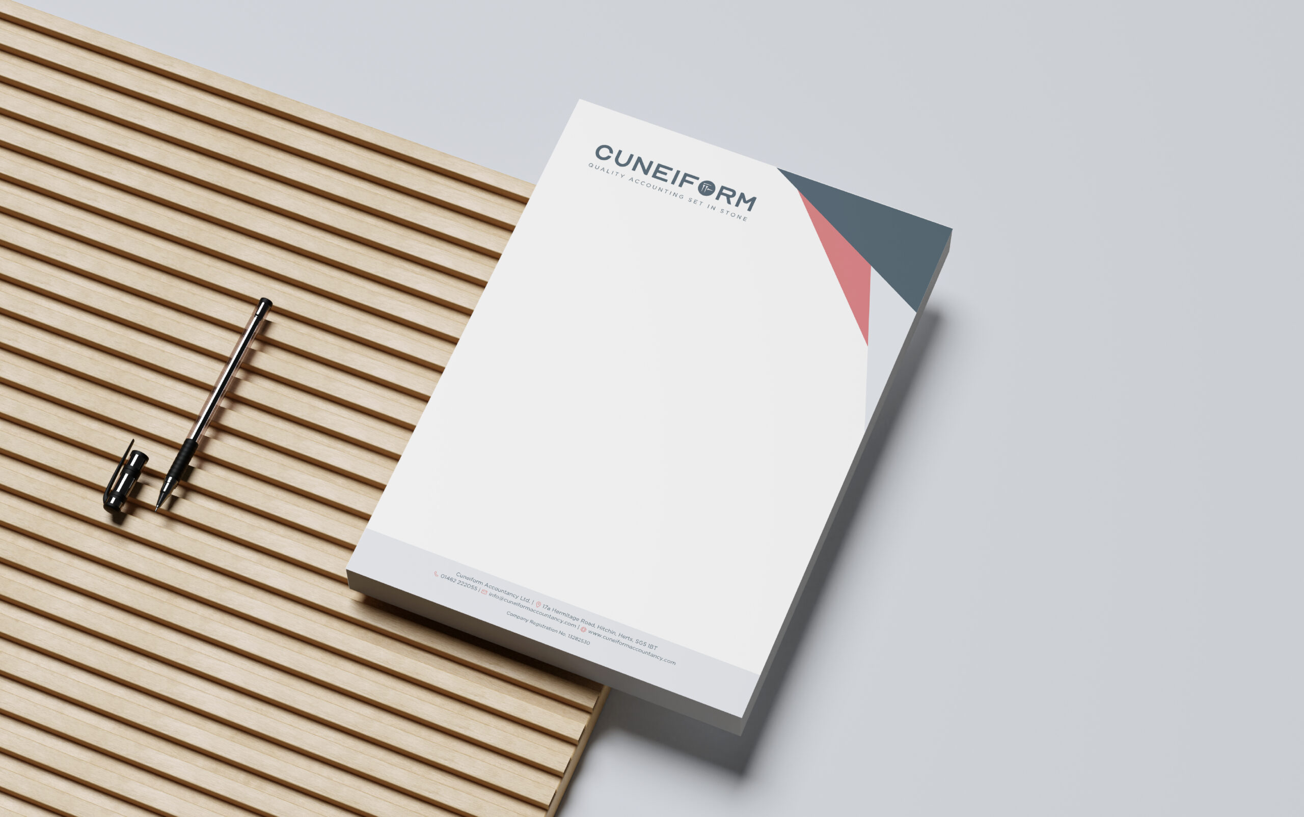 We meticulously crafted a distinctive brand identity for Cuneiform Accountancy that embodies professionalism and reliability. Our work began with designing a sophisticated logo that seamlessly integrates with the firm's values and vision. This corporate branding design was then rolled out across a wide range of stationery and office supplies, including business cards, letterheads, envelopes, and notepads. Each item was designed with precision to ensure a consistent and polished look, reinforcing Cuneiform's brand at every client touchpoint. The result is a unified and professional brand presence that enhances the firm's reputation and client trust.